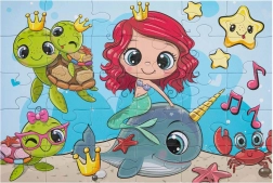 Otkrijte čaroliju podmorskog svijeta s očaravajućim motivom morske vile. Puzzle s 30 velikih dijelova potiču finu motoriku, strpljenje i logičko razmišljanje djece. Zahvaljujući većim dijelovima izvrsno su prikladne za mlađu djecu, koja će uživati u dovršenoj slici veličine 29 × 18 cm.