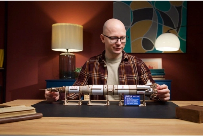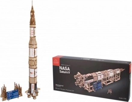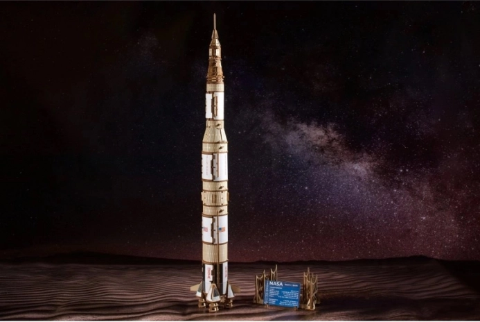 Uronite u eru APOLLO s drvenim modelom NASA Saturn V, najmoćnije nosive rakete u povijesti. Kompletić u mjerilu 1:170 osmišljen je za realističan doživljaj konstrukcije i istovremeno efektno izlaganje. Trodijelno postolje omogućuje prezentaciju rakete okomito ili vodoravno, bilo kao cjeline ili po pojedinim stupnjevima.