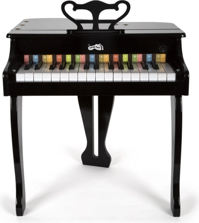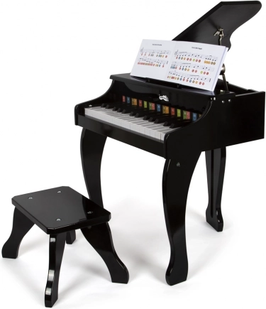 Set uključuje stabilan stolac, stalak za note i zbirku pjesama – dijete može odmah početi otkrivati svijet melodija. Klavir je zamišljen kao igračka za zabavno učenje i motivaciju kroz igru, a ne kao punovrijedan glazbeni instrument.