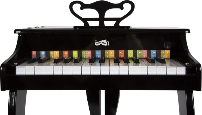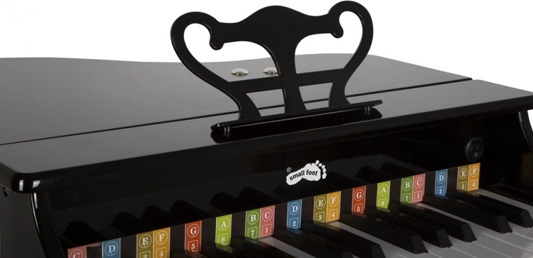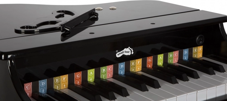 Elegantno dječje klavirsko krilo SMALL FOOT od kvalitetnog drva donosi djeci radost glazbe. Ima luksuzan dizajn, odličnu kvalitetu zvuka i poklopac koji se otvara kao na pravom klaviru. U paketu su stolac, stalak za note i zbirka pjesama s bojama označenim notama i tipkama za lako učenje. Napajanje: 4× AA baterije (nisu uključene).