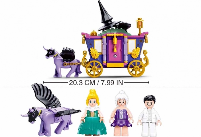 Dijelovi su izrađeni od kvalitetne, nezapadne i izdržljive ABS plastike te su u potpunosti kompatibilni s popularnim građevnim setovima. U pakiranju se nalazi jasan priručnik uz koji ćete složiti kočiju duljine približno 20 cm i tematske dodatke za čarobne prizore.