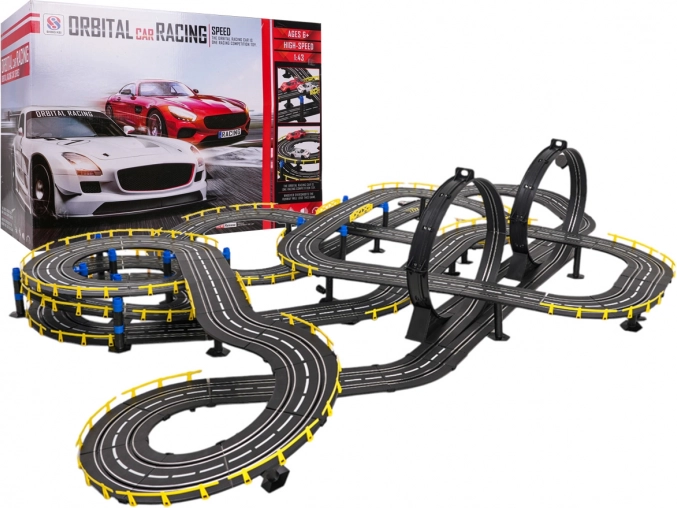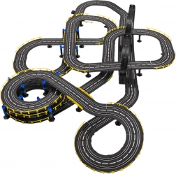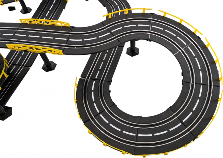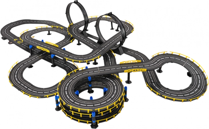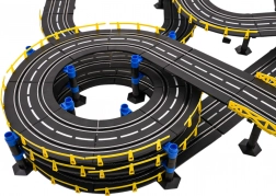 . | Velika trkaća staza u mjerilu 1:43 s dva autića na daljinsko upravljanje za djecu od 3 godine. Pojedinačni građevni elementi omogućuju izgradnju staze s oštrim zavojima, spiralama i ravnim dionicama – sve za maksimalnu zabavu i pojačavanje uzbuđenja tijekom igre. Ovaj jedinstveni set idealna je igračka za male ljubitelje automobilskih utrka. Staza je opremljena brojačem krugova. Napajanje: 220 V – 50 Hz. |