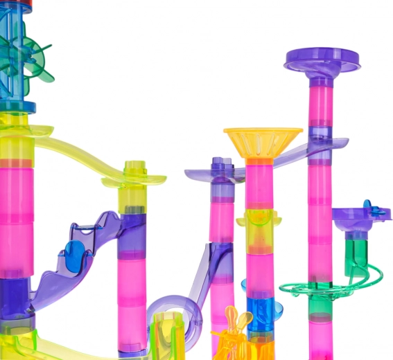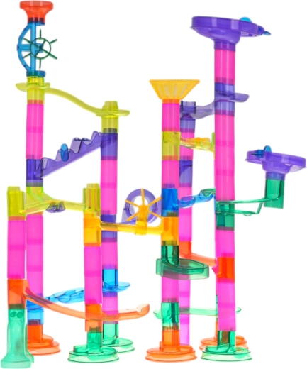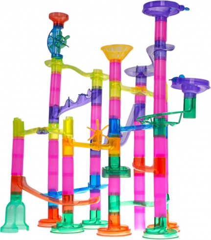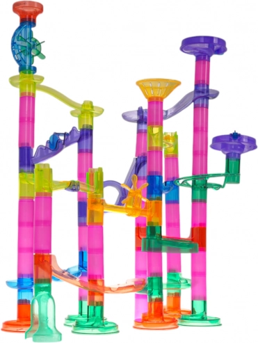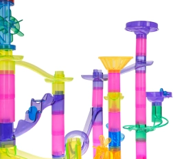 Šarena i stabilna staza za kuglice od prozirnih elemenata donosi djeci radost otkrivanja kretanja, gravitacije te uzroka i posljedice. Djeca sama osmišljavaju i grade konstrukcije, a zatim prate kako kuglice jure kroz tunele, spirale i lijevke. Trepereće kuglice na baterije svakom spuštanju dodaju atraktivan svjetlosni doživljaj.