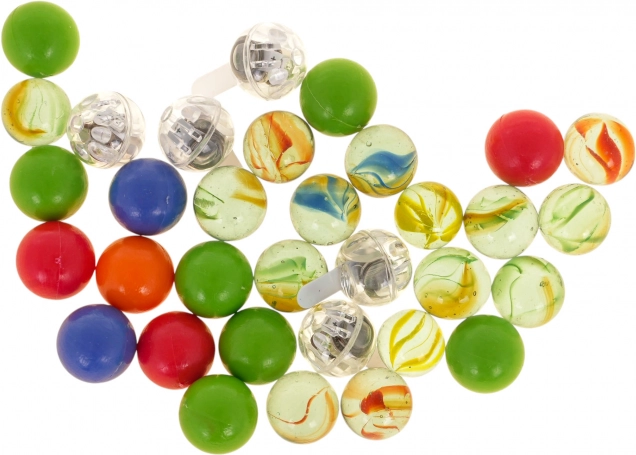 Paket sadrži 33 kuglice, od toga 5 treperećih s RGB LED svjetlima. Svjetlosni efekti potiču isprobavanje novih ruta i produžuju vrijeme igre.