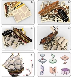 Otkrijte radost stvaranja s detaljnim 3D modelom slavnog britanskog ratnog broda HMS VICTORY iz godina 1759–1765. Puzzle su dizajnirane tako da budu lako sastavljive bez alata, a pritom nude realistične detalje jedara, jarbola i palube.