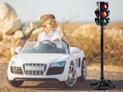 Ovaj veliki semafor za djecu vjerno oponaša stvarnu prometnu signalizaciju i pomaže na razigran način usvojiti osnovna pravila cestovnog prometa. Zahvaljujući tri svjetlosna režima (crveno, narančasto, zeleno) i integriranom zvuku idealan je za učenje prelaska ceste i igru s dječjim vozilima.