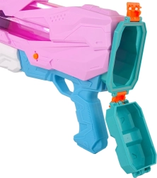 Vodeni pištolj dolazi u upadljivim bojama ružičaste i tirkizne, s ergonomskom drškom za lako držanje i udobnu igru.