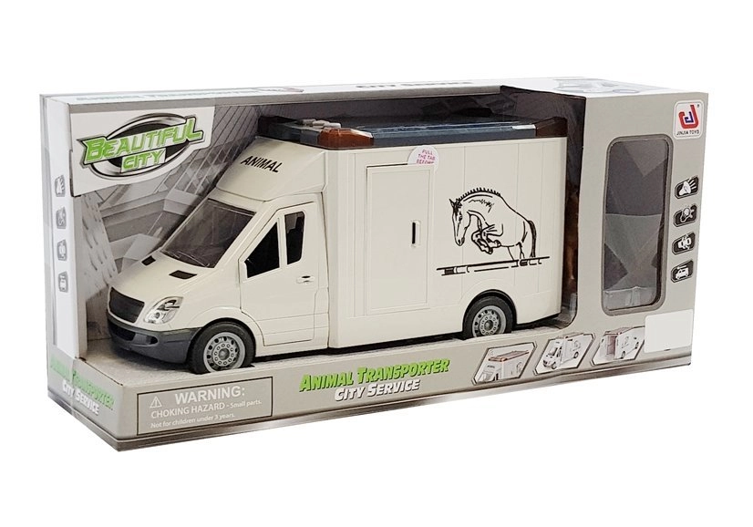 Vjerno reproducirano vozilo za prijevoz konja. Vozilo je razrađeno u svim detaljima, a interijer je opremljen svim elementima pravog vozila, poput volana, instrumentne ploče i sjedala. Vozilo ima zvučne i svjetlosne efekte koji se aktiviraju tipkama smještenima na krovu vozila. Vozilo ima pogon na trenje. Opremljeno je bočnim i stražnjim vratima koja se otvaraju te uklonjivim krovom. U pakiranju se nalazi i figurica konja. Auto je lagano i lijepo izrađeno, napajano baterijama koje su dio seta. Vozilo ima gumene kotače.