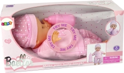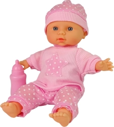 Lutka je odjevena u ružičastu pidžamu na točkice. Na glavi ima preslatku kapicu. Sve se savršeno slaže. Pritiskom na trup lutke čuju se zvukovi karakteristični za malu bebu: plač, brbljanje, riječ "mama" itd. Svaki pritisak donosi novo iznenađenje zvukovima. Lutka ima pokretne ruke i noge, odjeća je uklonjiva, što omogućuje promjenu garderobe.