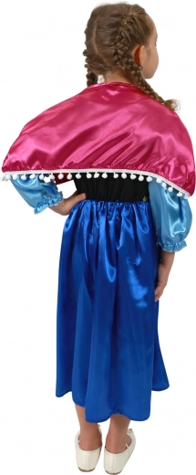 Ovaj dječji kostim pretvara svaku malu modnicu u princezu zimskog kraljevstva. Sjajna plava suknja i crni korzet s nježnim tiskom stvaraju elegantan izgled koji će se istaknuti na karnevalu, rođendanskoj proslavi ili kod kućnog presvlačenja.