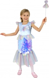 Ovaj dječji kostim morske vile pretvorit će svaku malu maštaricu u podmorsku princezu. Sjajni materijali i iridescentne šljokice stvaraju efekt morskih ljuskica, dok nježni volani i pastelne boje naglašavaju čaroban izgled. U kompletu se nalazi i štapić za još više mašte i igre.