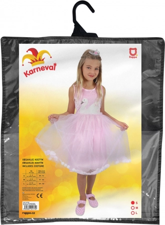 Očarajte malu princezu ovim nježnim kostimom s motivom labuda. Haljina u ružičastoj boji ima pufastu tilsku suknju s laticama i bijelim perlicama, satenastu podsuknju za lijepu punoću te ukras labuda na prsluku. Idealno za maškare, proslave i igre preodijevanja.