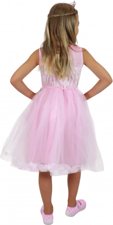 Ružičasta haljina labuđe princeze donosi čaroliju u svaki dan. Lagani sloj tila preko satenske podsuknje stvara pufast izgled, a pri kretanju lijepo njiše suknju. Gornji dio s motivom labuda djeluje nježno i elegantno, pa će se vaša djevojčica osjećati kao prava princeza.