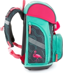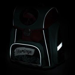 Lagana i ergonomski oblikovana školska torba s motivom flaminga nudi anatomski oblikovana leđa, široke podstavljene naramenice i čvrsto dno za sigurno nošenje školskog pribora. Zahvaljujući reflektirajućim elementima dijete je bolje vidljivo, a prostrana komora s praktičnim džepovima osigurava preglednu organizaciju potrepština za 1.–2. razred.