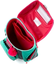 Jedna prostrana komora prima sve potrepštine za učenike 1. i 2. razreda, prednji džep idealan je za užinu, a čvrsto dno štiti sadržaj od prevrtanja i rasipanja. Sigurnosna kopča olakšava zatvaranje, a reflektirajući elementi povećavaju vidljivost djeteta na putu u školu i iz škole.