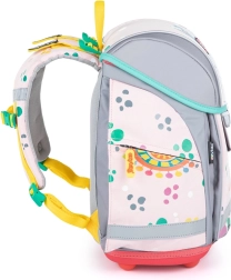 Podstava od prozračnog materijala i široke, mekano podstavljene naramenice osiguravaju udobno i pravilno raspoređivanje težine na dječjim ramenima.