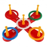 Ova igra bacanja križeva s krugovima savršena je kombinacija zabave i obrazovanja. Sjajan način za vježbanje koordinacije ruku i očiju djece dok se igraju. Igra uključuje križnu bazu s pet postolja i šarene krugove koje je potrebno bacati na postolja kako biste skupili bodove.