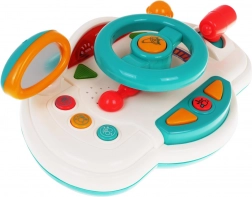 Zabavni interaktivni simulator vožnje za djecu od 18 mjeseci donosi realistično iskustvo vožnje. Nudi svjetlosne efekte, zvukove motora i trube, upute na engleskom (turn left/right) i pokretne dijelove poput volana, retrovizora i ručice mjenjača. Šaren dizajn i jednostavno upravljanje potiču razvoj motorike i mašte.