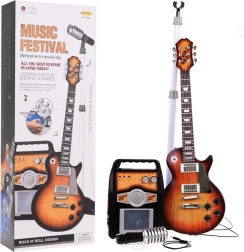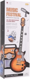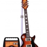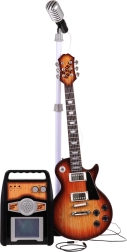 Ovaj kreativni glazbeni set idealan je izbor za djecu od 3 godine naviše. Električna gitara u smeđoj izvedbi djeluje kao pravi instrument, na pojačalo se spaja priloženim kabelom, a dijete može odmah početi svirati i pjevati u mikrofon na stabilnom stalku. Pojačalo omogućuje zasebno podešavanje glasnoće gitare i mikrofona, nudi ulaze za gitaru, mikrofon te vanjski MP3. Za atmosferu se brinu šarena svjetla koja trepere u ritmu.