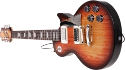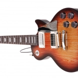 Gitara u smeđem “sunburst” stilu s kontrolama i remenom motivira djecu na glazbu. Unaprijed zadani ritmovi i melodije pomažu pri prvim koracima.