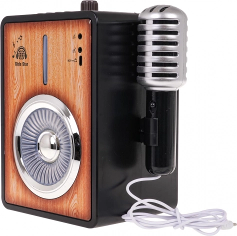 Dječje karaoke pojačalo donosi sjajnu kombinaciju glazbe, svjetla i zabavnih funkcija. Upravljačke tipke su pregledne, glasnoću podešavate rotacijskim gumbićem, a nakon uključivanja djecu dočekuje vesela melodija sa svjetlosnim showom. Priključite mikrofon, uključite rock pjesme ili dječje melodije i show može početi.