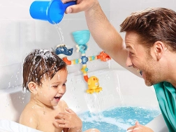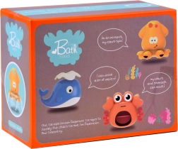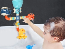 Ovaj interaktivni vodeni set pretvara svako kupanje u igru. Ulijte vodu u gornji lijevak i promatrajte kako tok putuje kroz cjevčice, okreće elemente i stvara fontane i slapove. Dijelovi s motivima hobotnice, kita i raka lako se preslaguju i stvaraju nove rute.