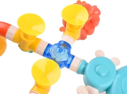 Igračka je opremljena snažnim vakuumskim čepovima za stabilno pričvršćivanje na glatke površine (pločice, kada). Sigurne, šarene plastične komponente mame na istraživanje i razvijaju finu motoriku, logičko razmišljanje i kreativnost.