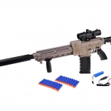 Ovaj veliki električni blaster oduševit će male i velike obožavatelje timskih okršaja. Realističan dizajn s priloženom optikom, prednjim rukohvatom i spremnikom privlači na prvi pogled, dok sigurne pjenaste strelice osiguravaju bezbrižnu zabavu u kući i na otvorenom. Zahvaljujući automatskom punjenju dovoljno je prebaciti prekidač i pritiskati okidač – blaster se brine za neprekidnu paljbu.