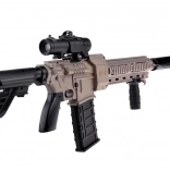 Lagana konstrukcija od izdržljive plastike i podesivi prednji rukohvat povećavaju udobnost tijekom igre. Pomična optika pomaže preciznijim pogocima na većoj udaljenosti, dok uklonjivi spremnik omogućuje brzo dopunjavanje municije. U paketu je baterija 3,7 V/500 mAh i punjač, tako da možete krenuti u akciju odmah nakon punjenja.