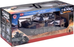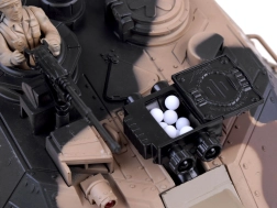 tenk, upravljač, akumulator 7,4 V 1200 mAh, USB kabel, meta, plastične i vodene kuglice, odvijač, 2 dodatne karike, figurica tenkista, upute
