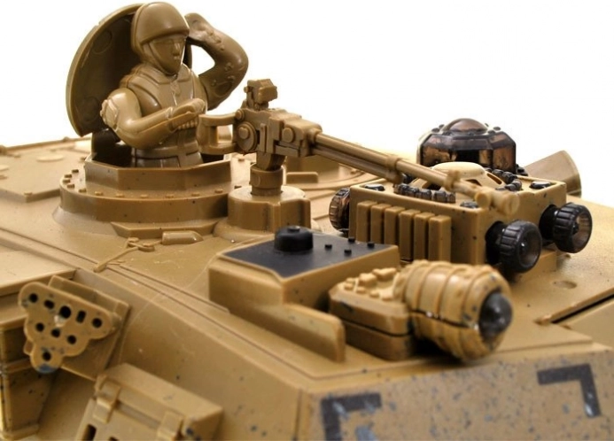Prednja LED svjetla, osvjetljenje kupole i stražnji indikatori stvaraju atmosferu noćnih operacija. Otvorivi poklopac prima priloženu figuricu tenkista.