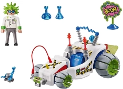 Krenite na start s luckastim profesorom i njegovim znanstvenim gokartom! Zahvaljujući nateznom (pull-back) pogonu vozilo juri naprijed, dok epruvete, „mlazni“ pogon i električna oprema dodaju svakoj utrci dozu mašte. Futurističnu karoseriju možete ukrasiti raznim dodacima i tako stvoriti jedinstvenu trkaću mašinu.