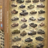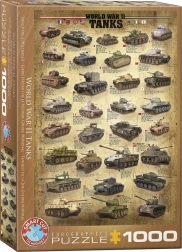 Otkrijte fascinantan svijet povijesne tehnike uz puzzle koje prikazuju tenkove iz Drugog svjetskog rata u detaljnoj obradi. Svako vozilo je dopunjeno imenom, zemljom podrijetla, tipom, razdobljem uporabe, dimenzijama, masom, brzinom i brojem članova posade. Netipična nepravilna raznica EUROGRAPHICS s neobičnim oblicima dijelova povećava zahtjevnost i zabavu. Dimenzije složene slike su približno 48,89 × 67,63 cm.