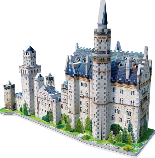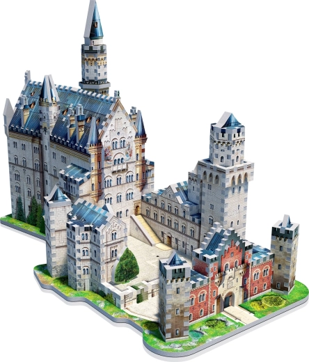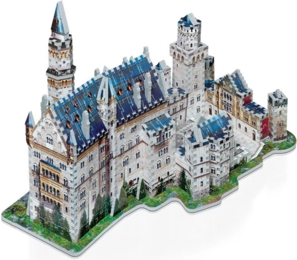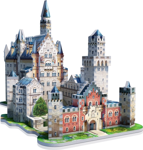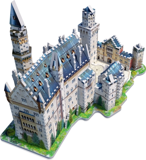 - Realistična izvedba dvorca Neuschwanstein s brojnim tornjevima i ukrasnim elementima.