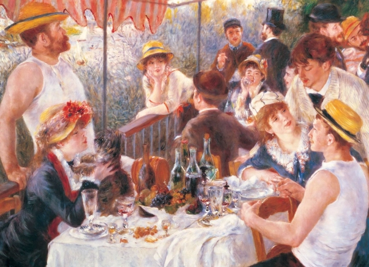 Uživajte u kvalitetnom slaganju s puzzle EUROGRAPHICS Ručak u sjeniku od 1000 dijelova. Dijelovi od recikliranog kartona debljine 1,75 mm precizno se uklapaju, nestandardna matrica donosi višu razinu težine, a gotova slika ima dimenzije 67,63 × 48,89 cm. Tiskano u Kanadi, proizvedeno u SAD-u.