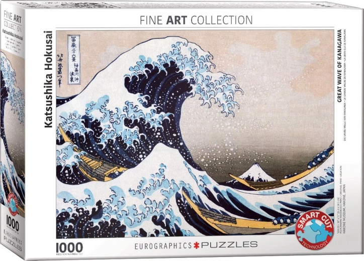 Puzzle EUROGRAPHICS Veliki val kod Kanagawe, 1000 dijelova. Mreza bez standardnog rasporeda, neobični oblici i viša težina. Dimenzije 67,63 × 48,89 cm.