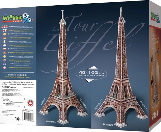 Gotov model visok je oko 102 cm i vjerno prikazuje ikoničnu siluetu Eiffelova tornja – idealno kao efektan ukras za dnevni boravak ili ured.