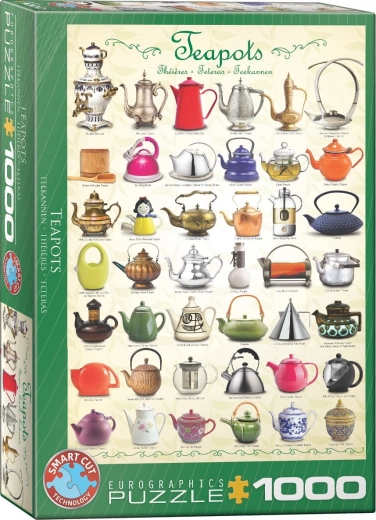 Puzzle EUROGRAPHICS Čajnici 1000 dijelova s nestandardnom raznicom i višom težinom. Precizan motiv, gotove dimenzije oko 48,89 × 67,63 cm.