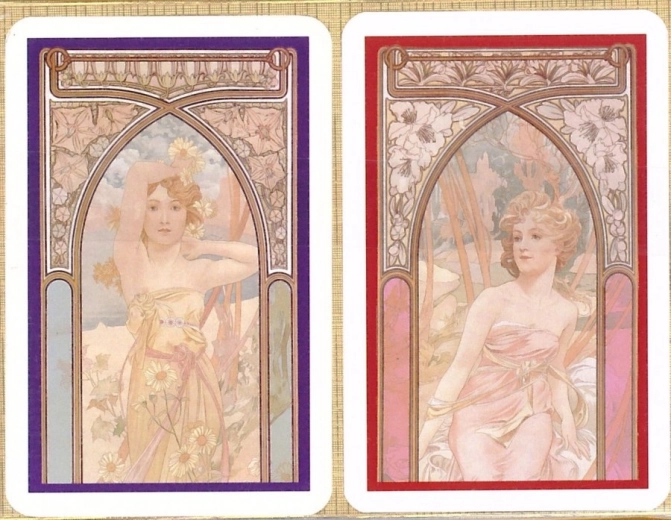 Luksuzne igraće karte s motivima Alfonsea Muche, idealne za igre poput kanaste, žolika ili pasijansa. Dva pakiranja po 55 karata oduševit će vas svojom ljepotom i elegancijom.