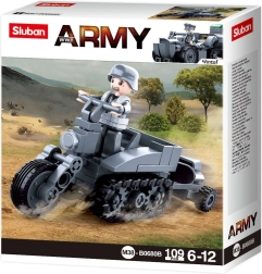 Otkrijte i izradite svoj vlastiti povijesni motocikl s gusjenicama iz doba Drugog svjetskog rata zahvaljujući Sluban setu. Visokokvalitetna i izdržljiva ABS plastika od koje su dijelovi izrađeni jamči sigurniju igru i dug životni vijek.