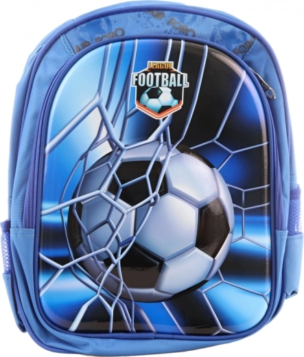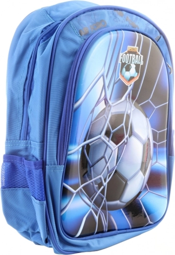 Plavi ruksak s nogometnim dizajnom idealan je za male sportske entuzijaste.