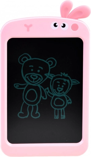 Ovaj dječji tablet za crtanje s LCD zaslonom potiče kreativnost i finu motoriku. Radna površina 17 × 12,5 cm pruža dovoljno mjesta za slike, natpise i bilješke. Roditelji će cijeniti trenutačno brisanje pomoću gumba ispod zečjih ušiju i nered jednak nuli, bez papira i bojica.