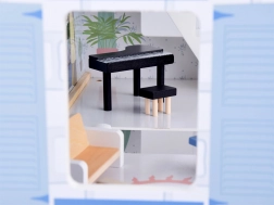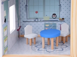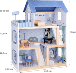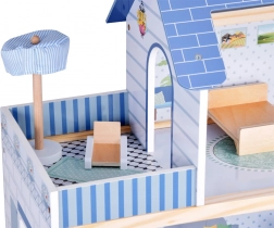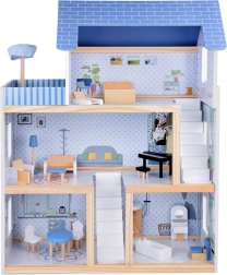 Drvena kućica za lutke ispunjenje je sna svake djevojčice. Osobito ako nije ljubiteljica ružičaste, ova prigušena, plavkasta kućica sigurno će joj se svidjeti.