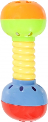 Lagana zvečkica sa smiješkom žabice i kuglicama u prozirnoj sredini razvija sluh i koordinaciju ruka–oko.