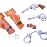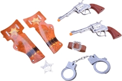 Set uključuje sve potrebno za realističnu igru kauboja: 2 revolvera, lisice, pojas i šerifovu zvijezdu.