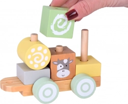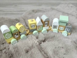 Drveni vlakić je idealna igračka za malu djecu. Sastoji se od šarenih blokova s različitim oblicima i životinjskim licima, poput krave, ovčice, konjića i mačkice, što jamči vrlo privlačnu zabavu. Djeca mogu slobodno preslagivati, slagati i stvarati, čime razvijaju svoju motoriku i maštu.