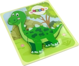 Dijelovi su izrađeni od drveta debljine 5 mm, što osigurava sigurnost i jednostavno rukovanje za malu djecu. Zahvaljujući jasnim bojama i jednostavnom dizajnu čak i najmlađa djeca mogu lako složiti sliku. Dostupne su dvije vrste motiva dinosaura: tiranosaurus i isanosaurus. O odabiru vrste informirajte prodavača.<p>