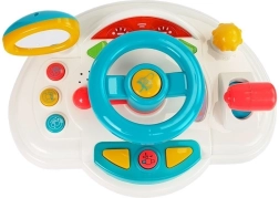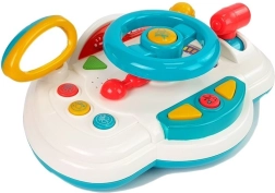 Šarena interaktivna instrumentna ploča s volanom pruža djeci realističan doživljaj vožnje. Nakon uključivanja čuju se tipični zvukovi pokretanja i vožnje, ne nedostaju klakson, žmigavci i svjetleći elementi. Pritiskom na tipke pokreću se vesele melodije, a igračka izgovara odabrane riječi na engleskom, pa se djeca prirodno upoznaju s jezikom.
