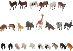 • manje figurice: konj, magarac, svinja, krava, ovca, pas, mačka, zec, kokoš, patka, bik, divokoza, 2× lav, žirafa, slon, zebra, gorila, polarni medvjed, tigar, nilski konj, nosorog, lavica, klokan