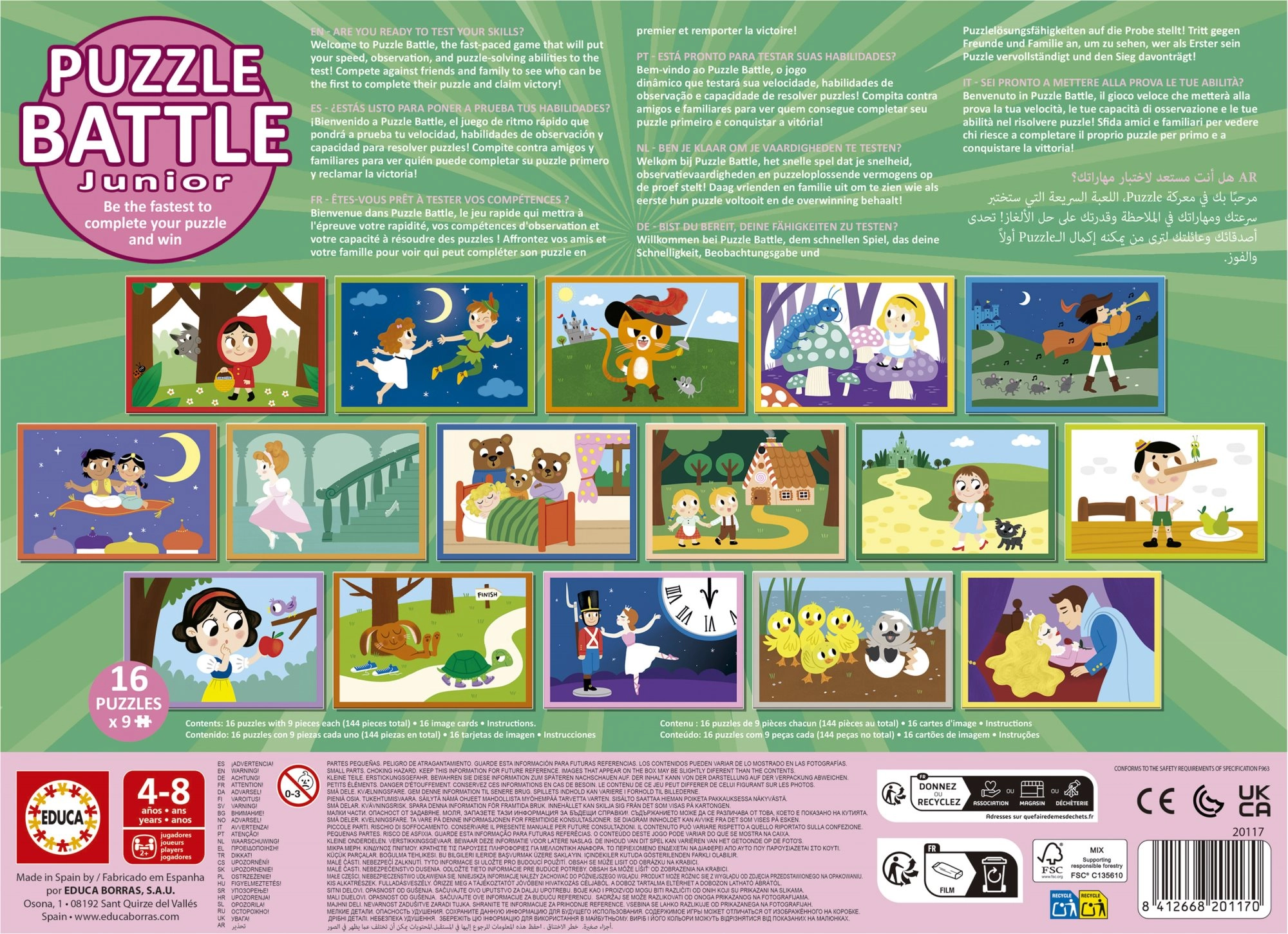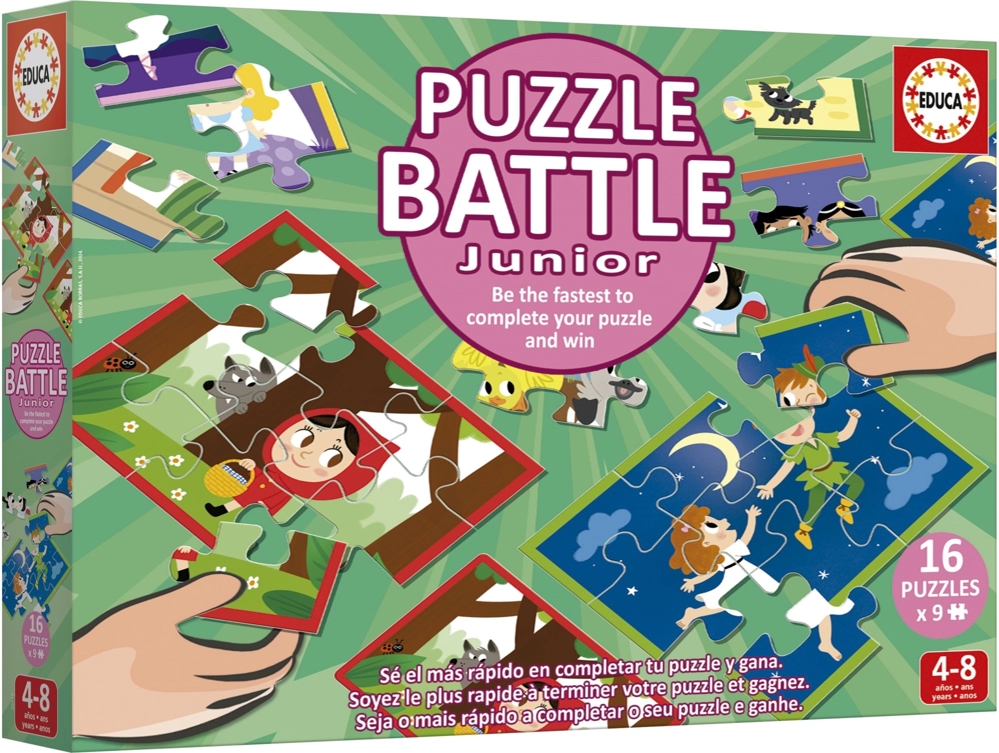 Doživite napetu puzzle bitku s linijom Educa – brzo slaganje, zabava i učenje u jednom. Set sadrži 16 mini slagalica od 9 dijelova i 16 kartica s predlošcima, idealno za dvoboje s prijateljima ili obitelji. Podržava koordinaciju oko–ruka, brzinu, strpljenje i zapažanje.